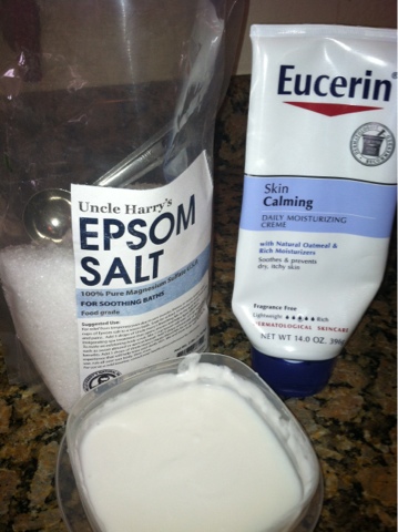 So during my injury I think almost everybody has asked me to try epsom salt for my back. Now me and epsom salt go way back. Ok way back meaning a couple years since I became a workout aholic. When I first started using them me and my husband lived in a house with a very large bathtub. Yes, a dream come true other then the fact it takes an hour for the tub to fill up and you would go broke with the amount of epsom salt you had to use. Then we had to move. My dream bathtub and fireplace swept out from under me. Next house had a regular size bathtub which I am sure most people have. Now coming from a tub that you could soak your whole body in to a tub where you have to soak half your body at a time a defiantly a bit disappointing. Needless to say my baths became a lot less frequent. Then the ability to even having a tub was swept out from under me. After another move I ended up with just a shower. Well at least I can stay clean but now while being injured epsom salt seemed to be out of the question.